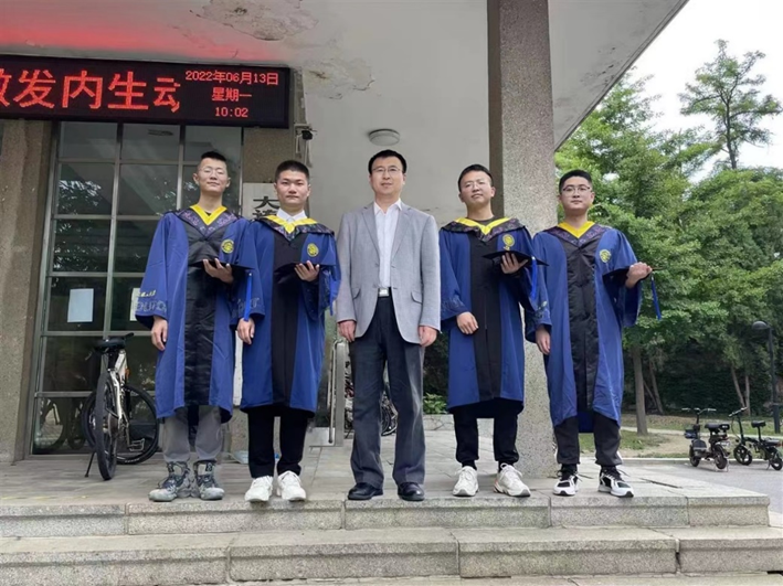 任广宇硕士(左二)和导师卢一平教授(中)合影