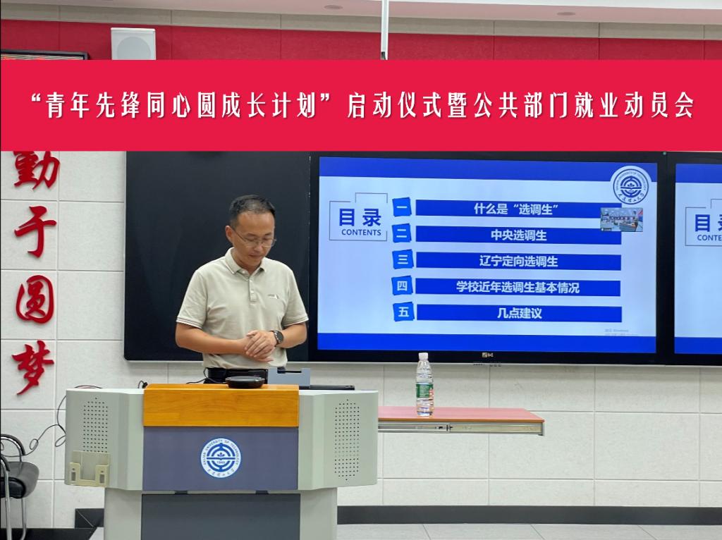 首先,学校党委组织部廖主任为大家讲授了学校选调生工作相关情况及要求。廖主任从选调生背景、中央选调政策、辽宁定向选调政策、学校近年选调生基本情况、备考建议等方面展开细致讲解,帮助大家对公务员工作建立起更充分、清晰的认知。廖主任指出:“选择报考选调生之前要心无旁骛,认真对待报考的全部流程;成为选调生后要有责任感和使命感,把自己的人生理想和家国需要,把个人的命运同祖国未来紧密结合在一起。”廖主任的讲授精彩全面,使大家更加坚定了为党和国家事业贡献自己的理想信念。