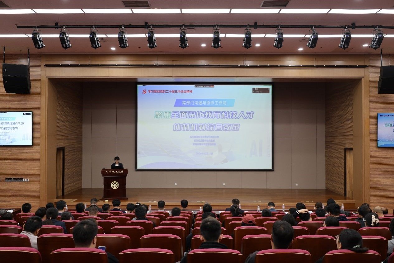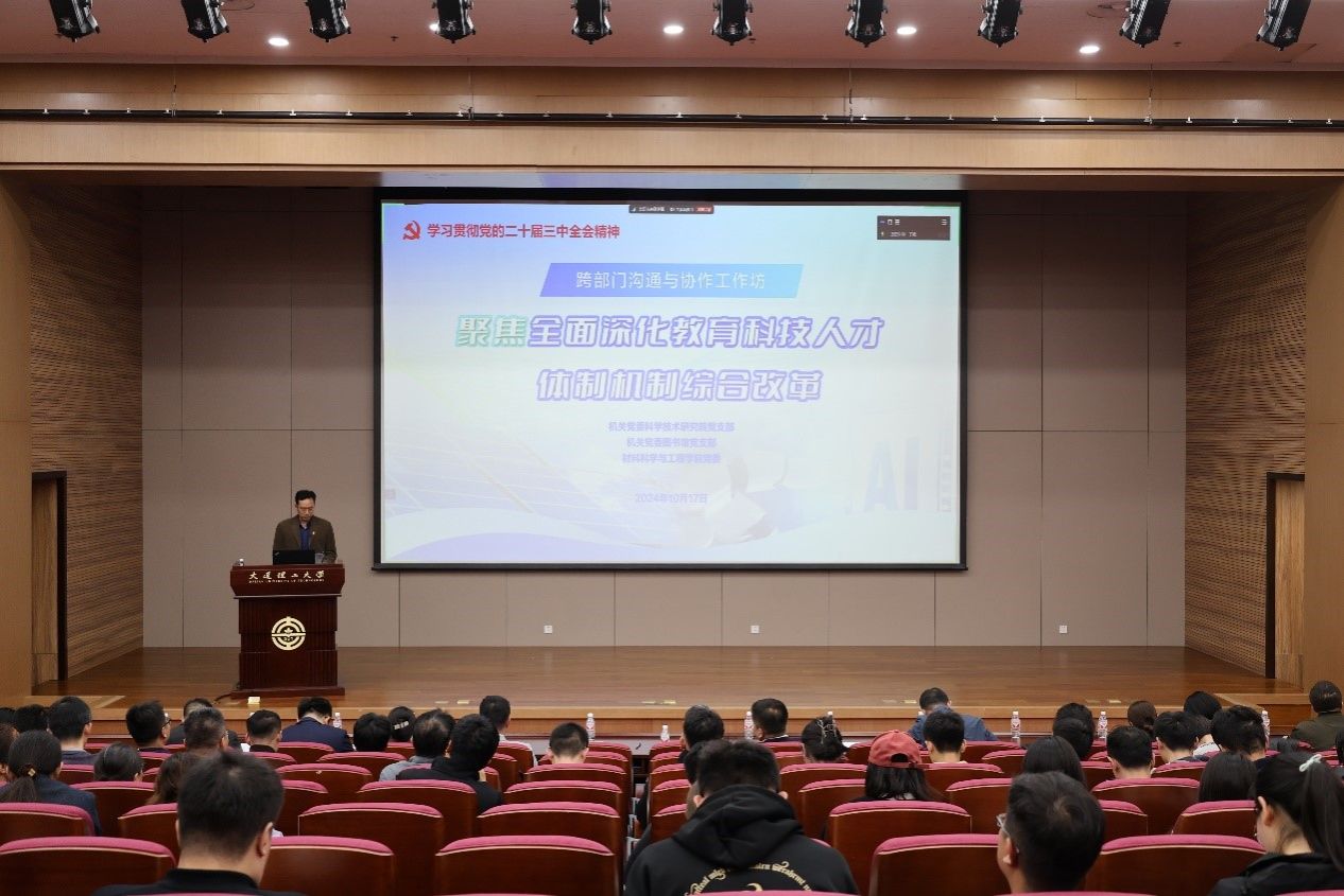 为进一步深化学习党的二十届三中全会精神,充分发挥党建引领作用,聚焦全面深化教育科技人才体制机制综合改革,加强与部门间的管理协同,10月17日下午,9999js金沙老品牌党委与机关党委科学技术研究院党支部、机关党委图书馆党支部在伯川图书馆报告厅,联合启动跨部门沟通与协作工作坊。三家单位党政领导班子成员、各党支部委员及全体教职工参加学习活动。活动由图书馆副馆长陶露主持。
