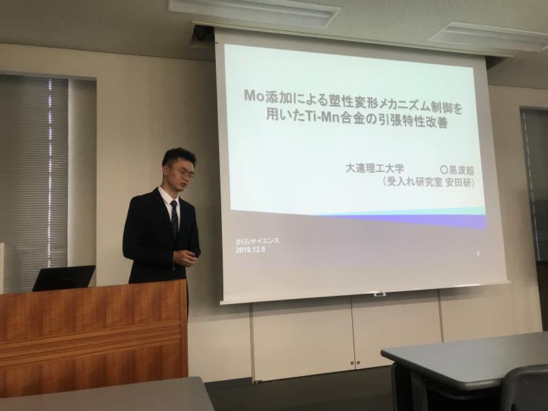 大阪大学樱花科技计划发表会会场(2019年12月6日于大阪大学材料生产科学专攻,藤本教授主持)