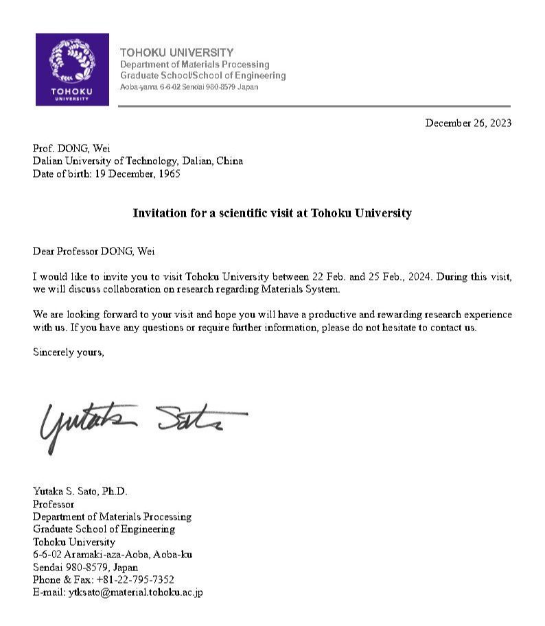 应日本东北大学邀请,我单位董伟拟赴日本进行学术访问交流。现将该