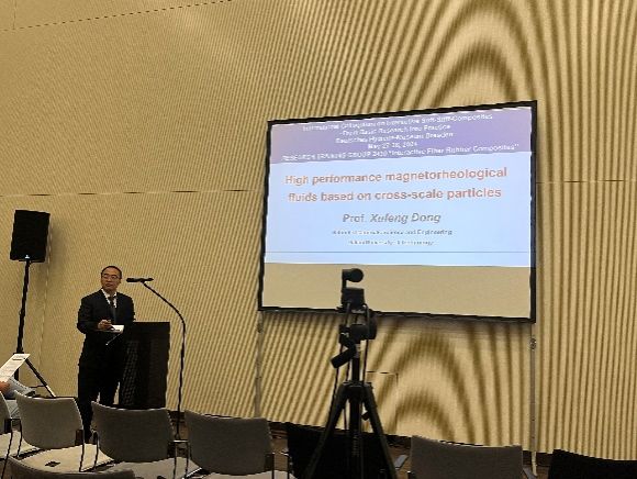会上董旭峰教授做了题为“High performance magnetorheological fluids based on cross-scale particles”的报告,汇报了课题组在高性能磁流变液开发领域的最新研究进展,引起了参会代表们的热烈反响,董旭峰教授回答了多名学者的提问,并进行了深入的交流和讨论。