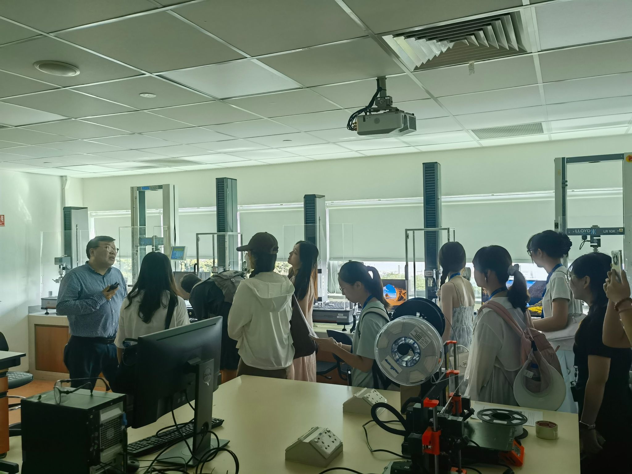 在新加坡国立大学材料系陈教授的带领下,学生们参观了实验室,了解到最新的实验设备,结合科研所学跟在校师生进行了深入交流。