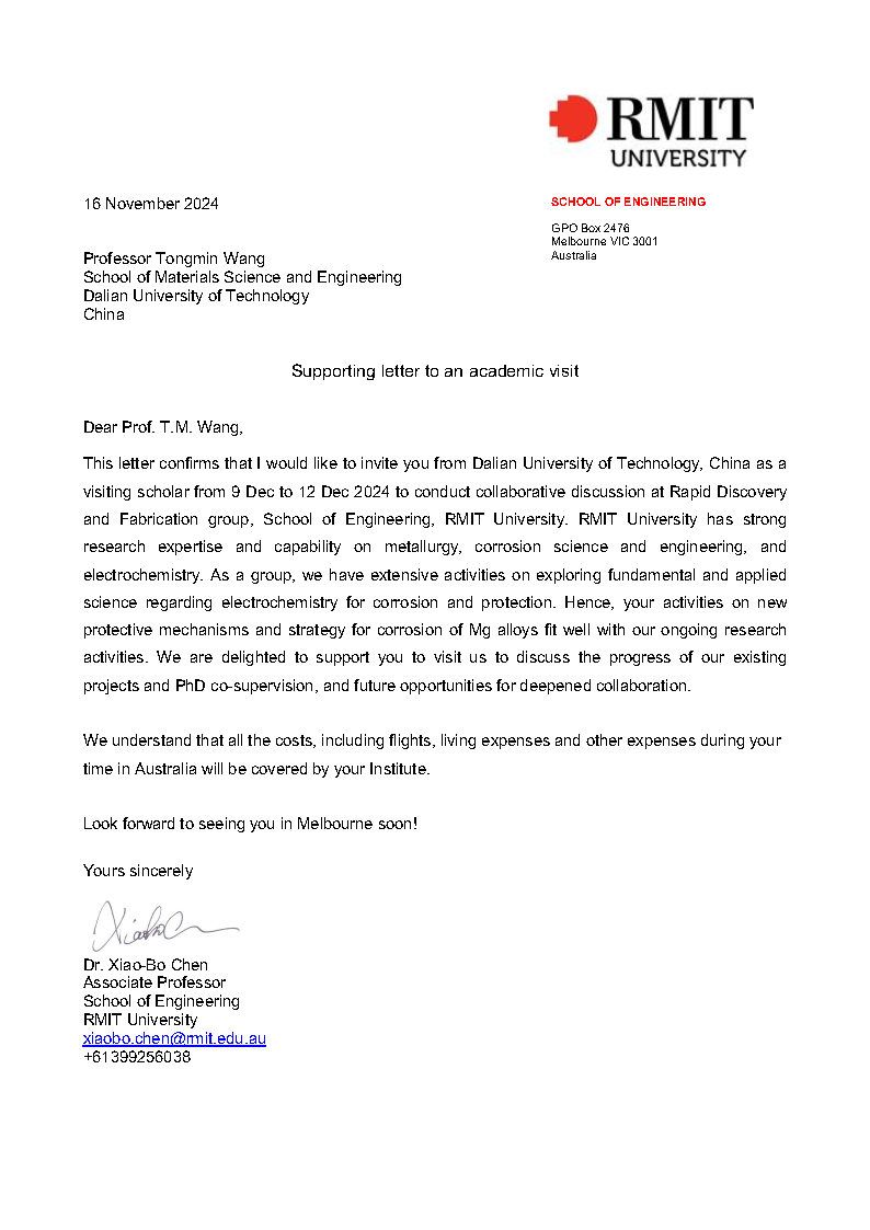应RMIT University(皇家墨尔本理工大学)邀请,我单位王同敏拟