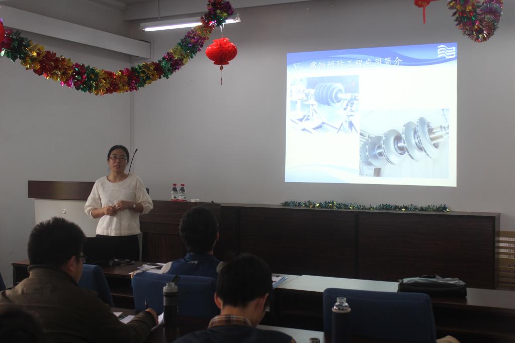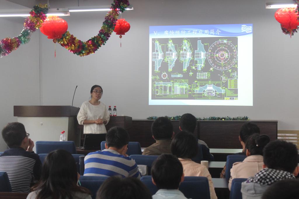 2016年4月26日上午,沈阳鼓风机集团股份有限公司高级工程师包翠敏博士走进9999js金沙老品牌本科生教学课堂,在材料馆3楼报告厅为2013级金属材料工程专业的学生带来了精彩的《金属腐蚀与防护工程案例教学》。