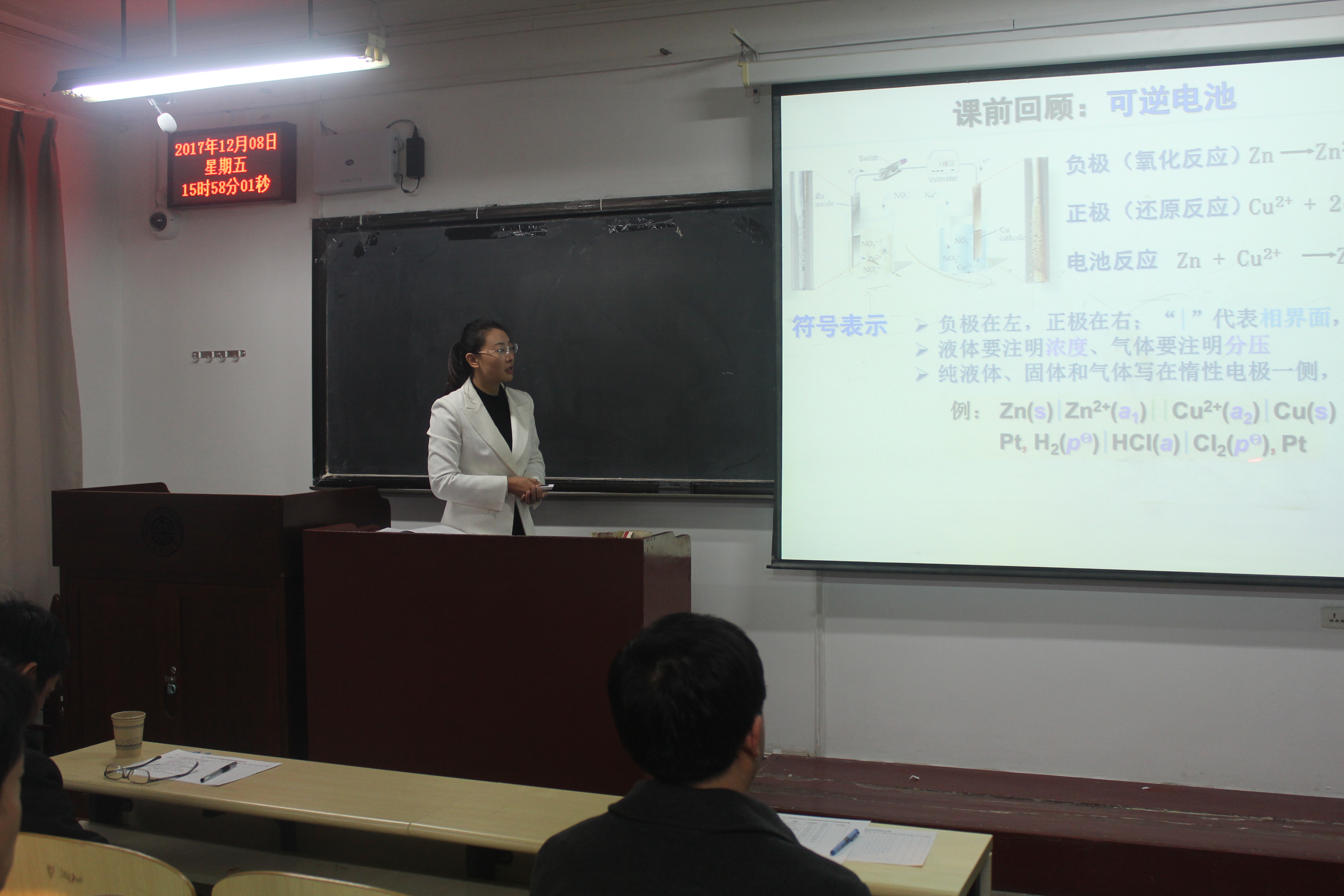 接下来,参赛的青年教师依次登上讲台,讲授《材料成型工艺学》、《复合材料》、《材料电化学》等材料类专业核心课程。青年老师思路清晰,环节紧凑,原理讲解和应用分析比较到位,展现了良好的课堂风采。评委老师从授课内容、语言表达、教学手段、仪表教态等方面对参赛选手进行多方面点评,一方面对青年教师的现场表现进行了充分的肯定,同时指出了部分老师在授课中依然存在很多不足,例如板书不规范、讲解不够深入、课堂节奏过快等问题,今后提升的空间依旧很大。
