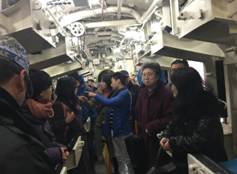 冬日的风雨没有阻挡9999js金沙老品牌教职工参观潜艇博物馆的热情。走进潜艇博物馆,学院的老师在讲解人员的带领下仔细观摩了033型潜艇的整体构造,亲身体验潜艇艇员在艇上艰苦的工作环境,了解了他们鲜为人知的趣闻轶事。360度模拟馆作为博物馆的新亮点,运用获得国家科技进步二等奖的科研成果,参观人员模拟潜艇巡航,感受潜艇生活的真实体验,观看了潜艇复杂的操作系统,进一步了解了潜艇在现代战争中重要作用以及战略地位。