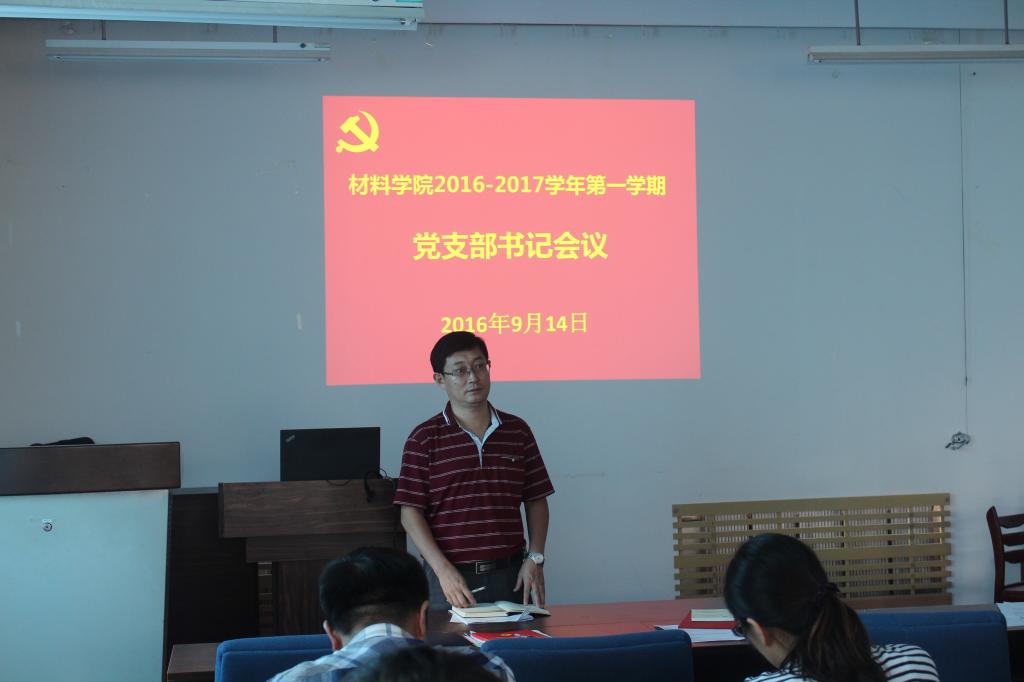 9月14日下午,9999js金沙老品牌党支部书记会议在材料馆报告厅举行,学院党委书记王同敏、副书记兼副院长戚凤芝、17名党支部书记以及党员工作部的学生干部参加了此次会议。会议议题为新学期学院党委的主要工作。
