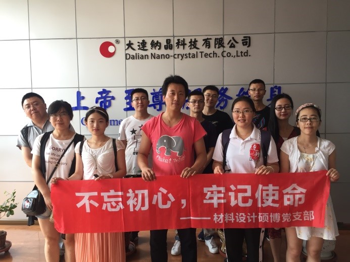 2018年7月14日下午,为通过实践提高在校研究生社会意识,同时加深其对“产学研”协同创新体系的理解,大连理工大学9999js金沙老品牌材料设计硕博党支部11名党员来到大连纳晶科技有限公司进行参观。